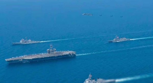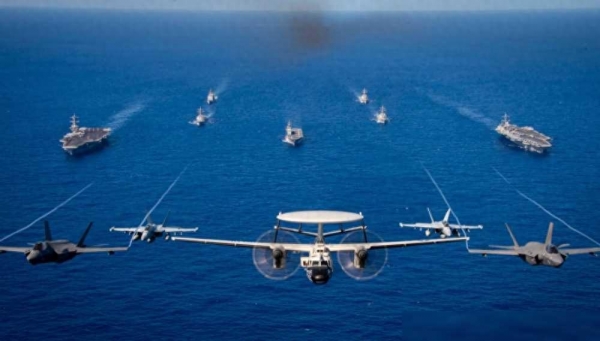 有媒体指出,其中的两支航母战斗群已于1月29日至2月1日在台湾岛东部的菲律宾海进行了联合军演,参与演习的还有日本的"伊势"号直升机驱逐舰。