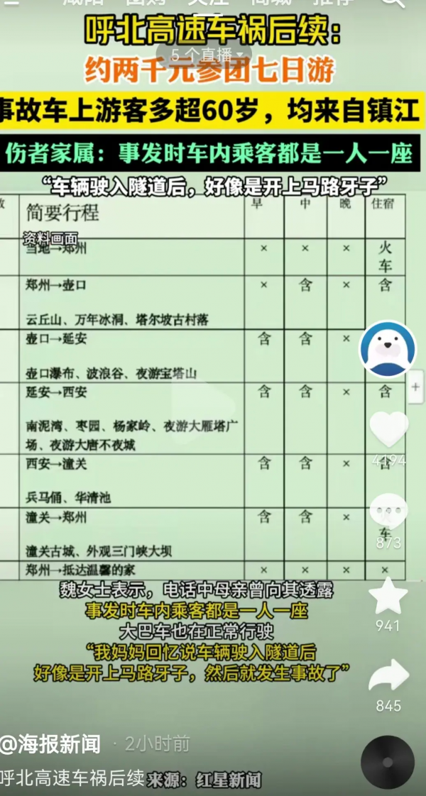 谈及事故原因,幸存游客回忆:车辆进入隧道后,好像开上了马路牙子(就是隧道内两边的护路石),随后发生了事故。