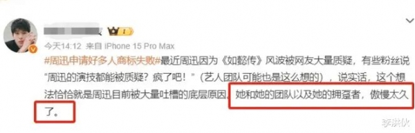 奈何这些话九儿周迅根本不听,直接被删掉并且实名举报,理由是"严重侵害周迅的名誉权,对艺人形象造成损害"。