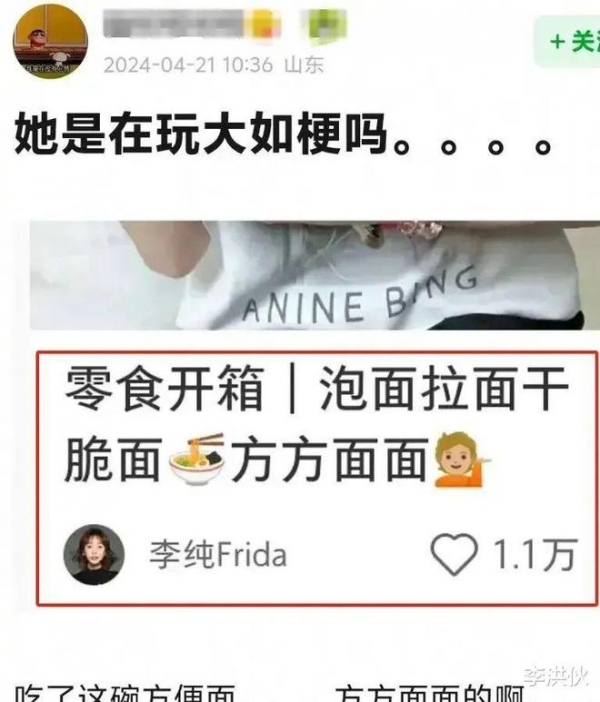 李纯写到:泡面、拉面、干脆面,方方面面。