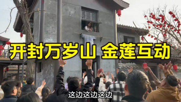 最近有名旅游博主来到了河南开封,没想到闲逛景区的时候,竟然看到"金莲开窗"和观众们互动的情况,录制视频发在网上,瞬间引发了全网爆火!