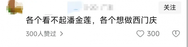 大家对武侠城"金莲"的误解,也让有些"正义感爆棚"的网友义愤填膺,说出了"各个看不起潘金莲,各个想做西门庆"的调侃!