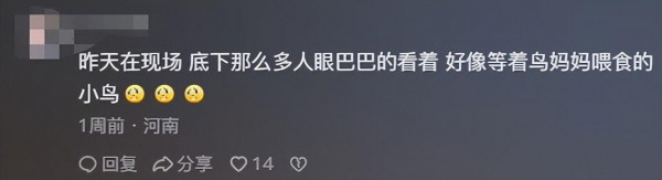 网友说:昨天在现场,底下那么多人眼巴巴看的看着,好像等着鸟妈妈喂食的小鸟。网友的这条留言。简直太形象了,画面感十足!