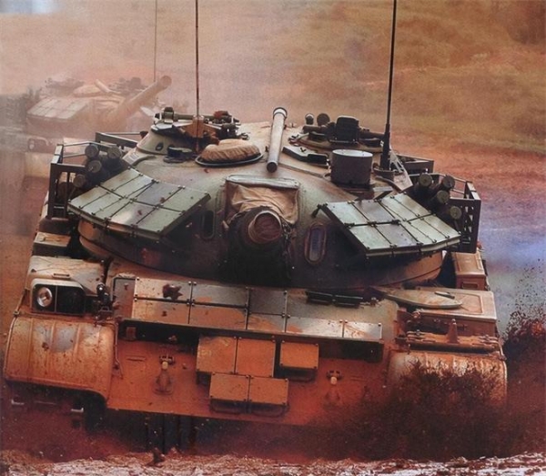 而在防护方面,也可以参考前苏联对T-54系列改进的T-55AM型,在车体正面加挂复合装甲与额外的爆炸反应装甲,将该车对各种穿甲弹、破甲弹的防护能力提升到早期三代主战坦克的水平。