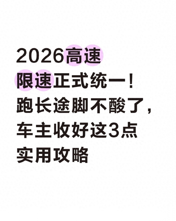 2026高速限速正式统一!跑长途脚不酸了,车主收好这3点实用攻略