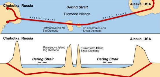 路透社提到,白令海峡最窄处宽约82公里,将俄罗斯广阔而人口稀少的楚科奇自治区与美国阿拉斯加州隔开,至少在150年前就曾有人提出连接两地的设想。位于白令海峡中央的代奥米德群岛,一个岛屿属于俄罗斯,另一个属于美国,两岛相距仅约4公里。