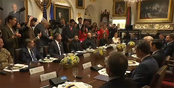 泽连斯基的回答引发一片笑声,特朗普也笑着说:"我猜到你不会喜欢这个想法!我知道他不会喜欢这个想法!"