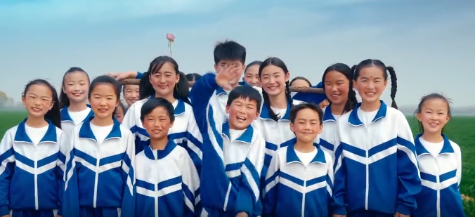 视频里,春天麦苗返青,孩子们穿着运动服,鞋上沾着泥,在田埂间起舞,动作虽不"专业",却充满活力。