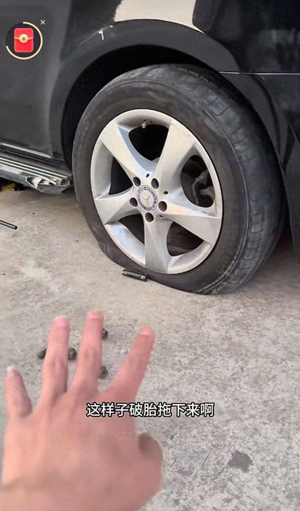 陈先生车辆爆胎。图/受访者账号截图