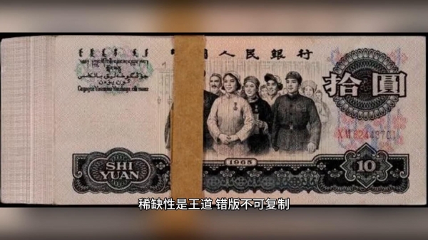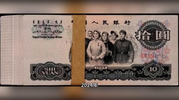 大团结纸币1966年开始发行,流通至2000年整整34年,是我国10元纸币中流通时间最长的。这也意味着品相好的存世量极少。普通旧钞通常30-100元,全新整刀纸币100张未拆封,2024年拍出2.3万,每张约200元,升值明显。更稀有的是票样币及印钞厂在正式发行前的样本存世极少。