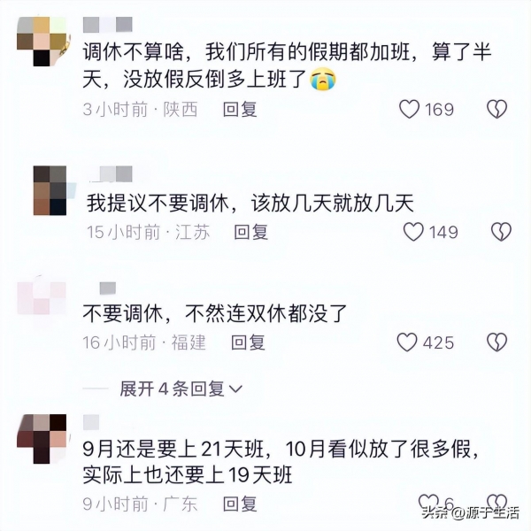 网友们对于这样的调休放假计划表达了不同的观点,有的网友表示这不叫放假,这叫挪假,还有的网友表示假期安排不合理,中秋节要赏月,第二天应该休息,这些反馈都反映了公众对于调休政策的不满。