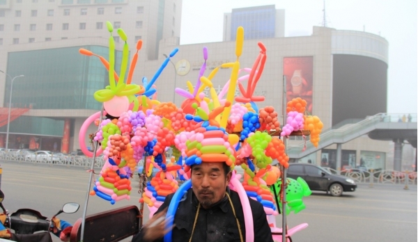 老者发丝染上霜色,面容刻满风霜沉淀出沉稳淡然。一身朴素衣物干净利落,身姿依旧挺拔利落。单凭单车奔走街巷依靠售卖气球安稳度日。世间万般谋生途径皆值得发自内心的敬重,这般自立自强的模样怎能不令人心生动容。
