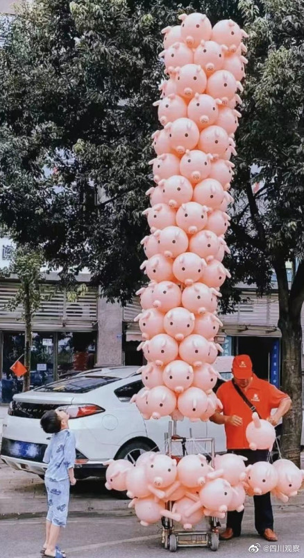 市井之间处处藏着动人的温柔。寻常街巷平淡如常,往来步履行色匆匆。偶然之间众人遇见一位骑行赶路的老者。简简单单的老式单车之上挂满憨态十足的猪猪气球。轻盈的气球随风轻晃,粉嫩模样直击人心。