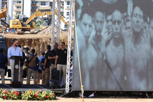 当地时间2026年1月14日,哥斯达黎加阿拉胡埃拉市,哥斯达黎加总统查韦斯与萨尔瓦多总统布克莱为一座参照萨尔瓦多模式建造的大型监狱奠基。 IC Photo