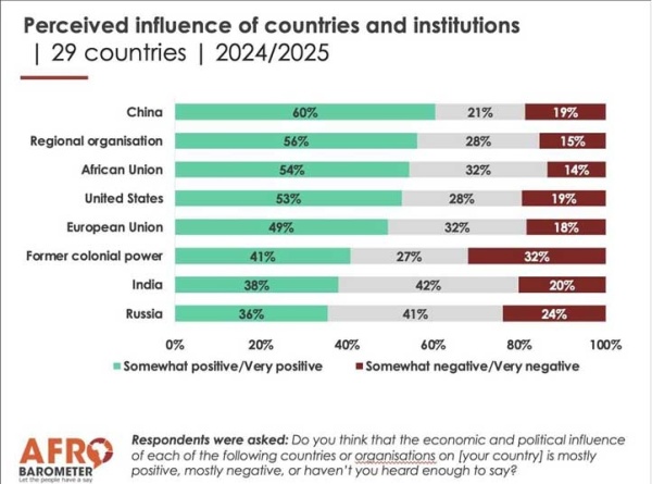民调显示,中国在非洲好感度达60%,排名第一。 "非洲晴雨表"