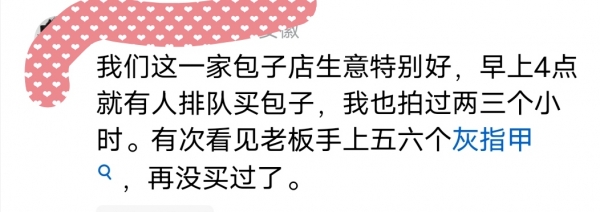 正当他付完钱,转身要走的时候,突然发现包饺子的大姨手上,那片灰黄色的灰指甲,在白生生的面皮和翠绿的菜馅里,显得格外扎眼。刚才吃得津津有味的饺子,瞬间在胃里翻江倒海。