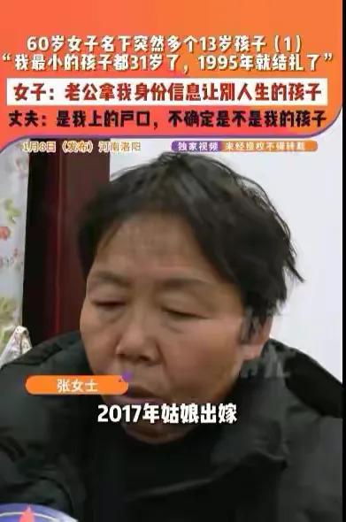 "我1995年就做了绝育手术,肚子上连疤痕都没有,怎么可能在2012年生个孩子?"河南洛阳张女士的怒吼里,藏着一段持续13年的婚姻骗局。结婚35年、育有三孩的她,在补办户口本时意外发现名下多出一个13岁男孩,而这场荒诞剧的始作俑者,正是与她相伴半生的丈夫--他盗用妻子身份证,协助婚外情人办理出生证明,将非婚生子女登记在原配家庭户口上。如今,张女士已正式起诉丈夫重婚,这场掺杂着背叛、违法与制度漏洞的闹剧,引发了全网对婚姻忠诚与身份安全的深刻拷问。