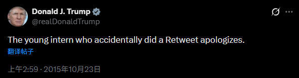 2015年10月竞选期间,特朗普曾转发质疑艾奥瓦州人精神健康的推文,几小时后删除。他当时在一份声明中将此归咎于"年轻实习生"。后来,他输掉艾奥瓦党团会议选举。