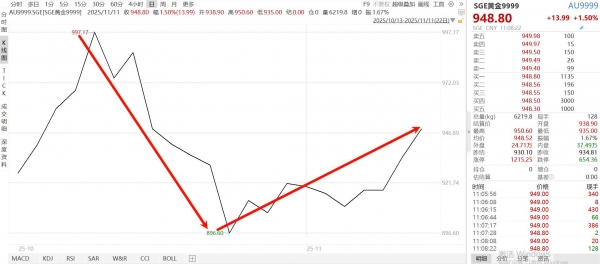 在跌到894元之后,黄金又开始迅速反弹,现在已经涨回948元。