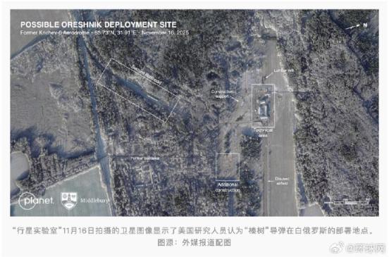 路透社当地时间12月26日独家爆料称,两名美国研究人员通过分析卫星图像发现,俄方可能在白俄罗斯东部一处前空军基地部署新型可携带核弹头的高超音速导弹,此举可能增强俄罗斯向欧洲全境发射导弹的能力。知情人士表示,这一评估与美国情报部门的发现大体一致。
