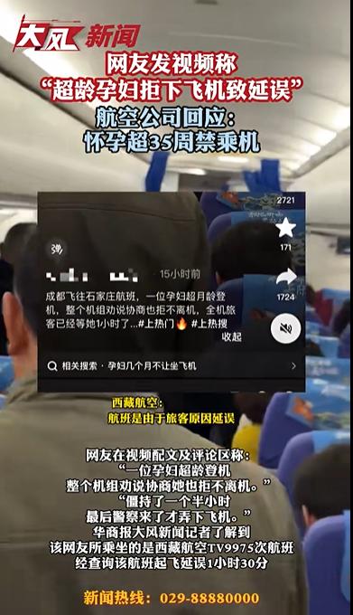 网友发视频称孕妇超月龄登机致延误,航司回应:暂无补偿,怀孕超35周禁乘机