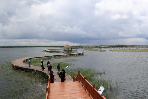 这座占地3.3万亩的湿地公园,是东北亚候鸟迁徙通道上的重要驿站。每年,数十万只水鸟在这里停歇和繁殖,种类达到177种。其中,有丹顶鹤、东方白鹳等6种国家一级保护动物,还有白枕鹤、白琵鹭等28种国家二级保护动物,是各种鸟类和野生动物理想的栖息地。因此,这里被誉为"中国白枕鹤"之乡,白枕鹤也是富锦的市鸟。