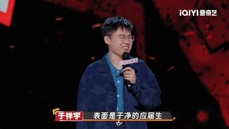 他笑着回应:"我表面上是个干净的应届生,其实心里住了个GAI。"可能对脱口秀演员来说,这是幽默。