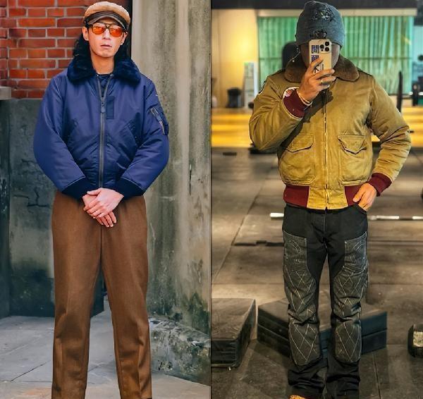 我自己也买了一件。是件灰绿色的工装夹克,面料挺括,肩线做得特别利落。穿上身第一感觉就是,人精神了。不像穿羽绒服,总有种被包裹着的懒散感。