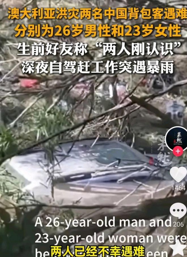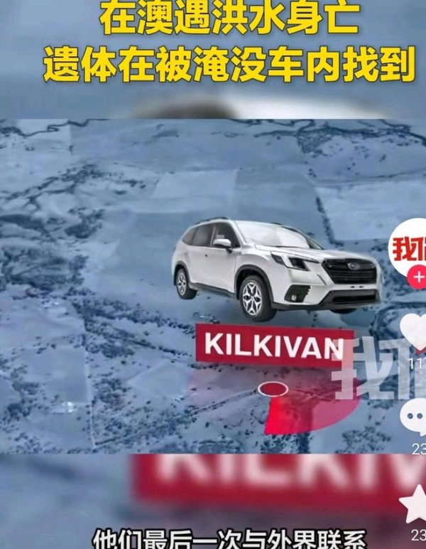 3月11日,在澳洲昆士兰州洪灾中遇难身亡的两个中国人遗体被发现。先是找到他们的车,一辆SUV,然后在车里找到他们的。