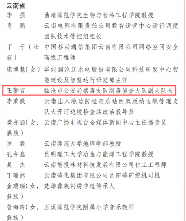 "王警官"是云南省临沧市公安局禁毒支队缉毒侦查大队副大队长,先后荣获个人二等功2次、三等功2次、嘉奖5次。