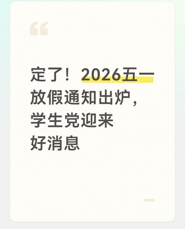 聊到这儿,2026年五一的放假安排、中小学生的超长连休,还有大家该注意的事项,都给大家说透了。