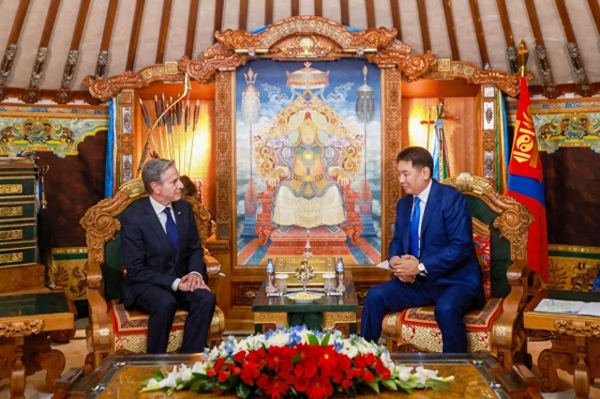 本月初,布林肯宣布对中国六大邻国进行访问,最后一站正是蒙古国。蒙古国总统呼日勒苏赫对布林肯表示,加强与美国的关系是蒙古国外交优先事项之一。