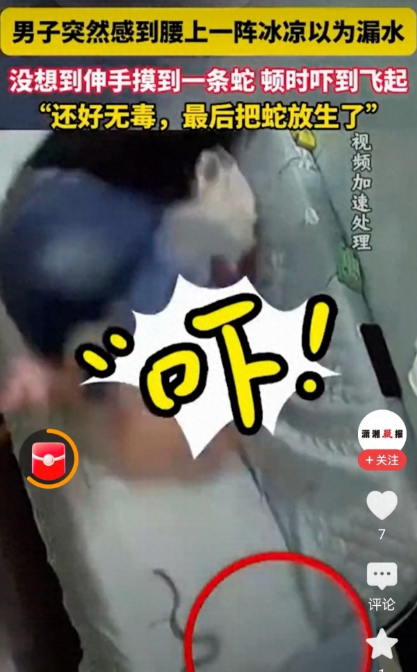 陈先生的第一反应特别真实--"以为是漏水了"。这跟我们大多数人遇到类似情况的反应简直一模一样。正是这种"习以为常"的错觉,让随后摸到蛇的惊吓感翻了倍。你说要是你在家躺着,突然摸到个冰凉滑腻的东西,低头一看是条蛇,会不会吓得直接从沙发上飞起来?