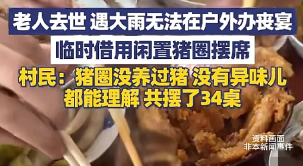 "笑发财了家人们,坐席在猪圈吃饭了!"菏泽农村一老人去世,因雨水太大,丧席临时借用闲置猪圈摆席34桌。邻居:没有异味,十分理解!