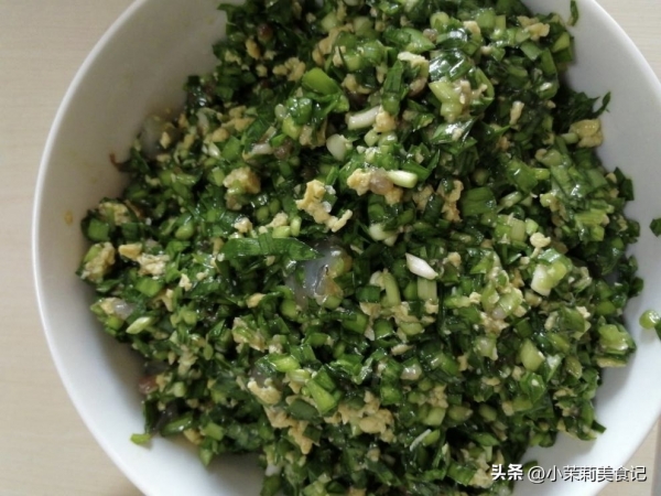 1、如今春韭正鲜美,包饺子滋味足。将其摘洗好了,控水待用。