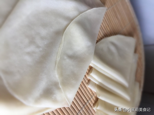 3、接着一一摞到一起,再继续擀薄,确保每一张都成为均匀的薄饼。