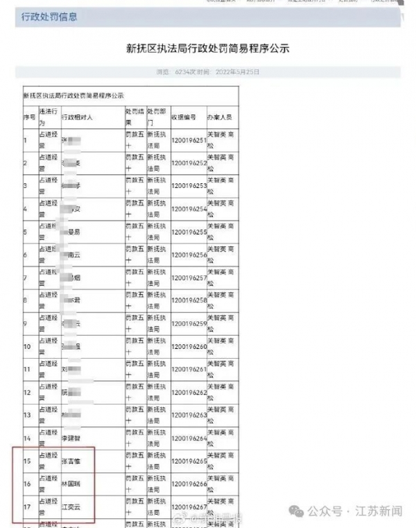 甚至,还"担任"过行政处罚对象--其中三人2022年在辽宁抚顺市,因占道经营被一人罚款50元。