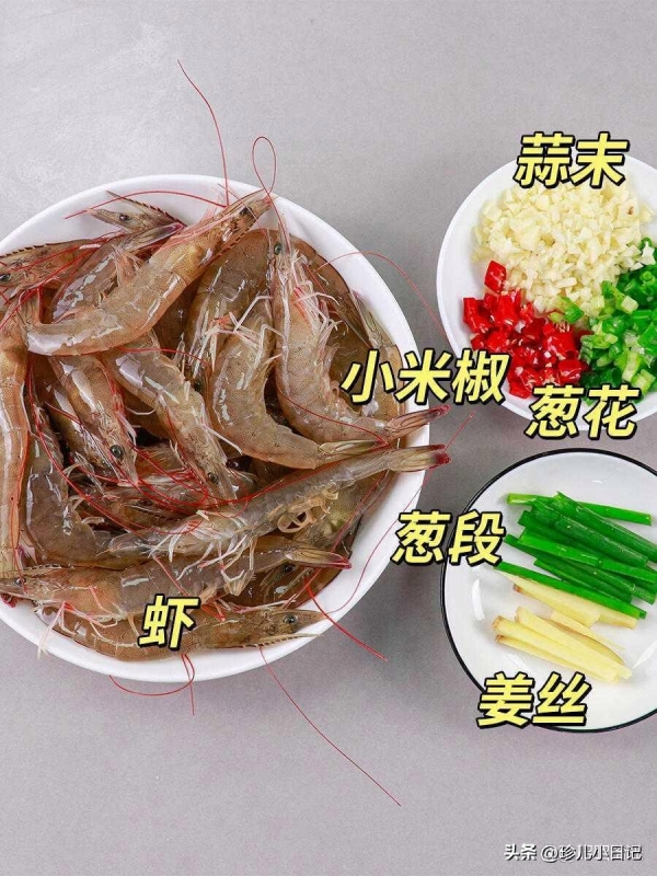 鲜虾、生姜、小葱、料酒、花椒、大蒜、小米辣、香菜、生抽、蚝油、陈醋、食用油