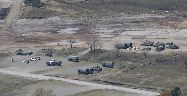 4月21日日本大分县的陆上自卫队日出生台演习场 新华社