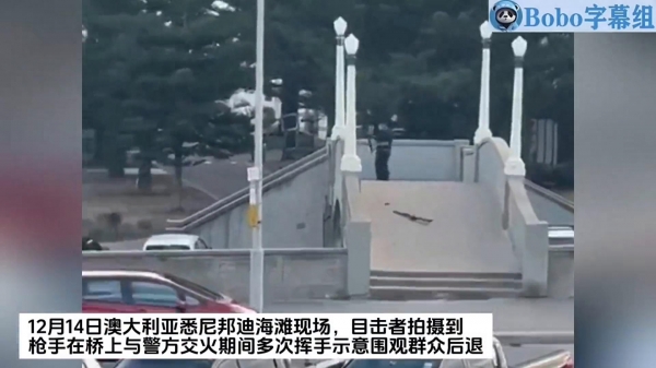 澳大利亚枪手与警方交火时 曾挥手驱赶围观者后退避免被射中 2025-12-15 11:21 今日头条 12月14日澳大利亚悉尼邦迪海滩现场,目击者拍摄到枪手在桥上与警方交火期间多次挥手示意围观群众后退。 澳大利亚当局称枪击事件已致12人死亡,当天有2千多人聚在海滩参加犹太光明节活动,警方称这是一次针对犹太人群体的袭击。