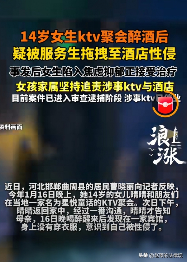 必须严惩!河北曲周,一14岁初中女生,跟朋友在KTV聚会时醉酒,醒后发现自己躺在陌生宾馆的床上,身上没穿衣服。第二天下午,在母亲反复追问下,她才说出实情:当晚,她被KTV一个男服务员带走,在宾馆前台,这名服务员登记后,将她拖至房间,她不认识对方,母亲立即报警。