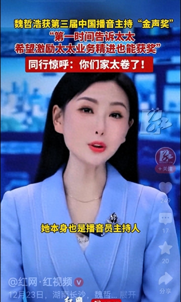 12月23日,第三届中国播音主持"金声奖"颁奖典礼在湖南长沙举行。来自各地的播音主持从业者齐聚现场,参与这一行业重要奖项的角逐。魏哲浩作为候选者之一,全程参与颁奖典礼流程。当念到获奖名单中"魏哲浩"的名字时,他起身整理着装,走向舞台中央。接过奖牌与证书时,他与颁奖嘉宾握手致意,随后站在话筒前准备发言。现场灯光聚焦,台下响起持续的掌声,记录下这一行业认可的时刻。