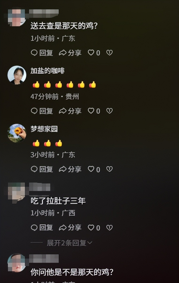 还有极少的网友还是在纠结鸡肉新鲜不新鲜。