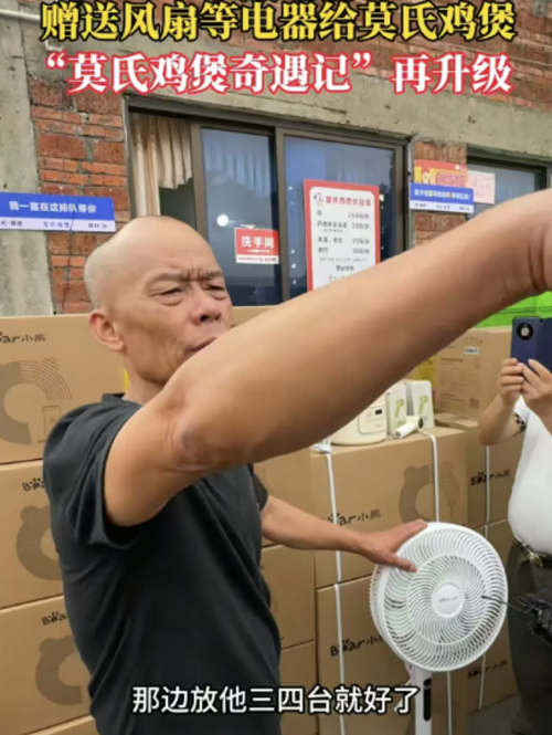 爆火之后,门店不仅面临食材供应的压力,店内的运营设备、配套设施也急需补充升级。此前温氏股份专程送来符合老莫要求的土鸡,解决了门店的食材刚需;而同为佛山本土企业的小熊电器,也第一时间送上了门店能用得上的电器,用自己的方式为本土爆火小店保驾护航。