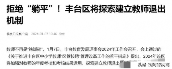 24年初,北京丰台区出台的教师考核制度和退出制度,也是一个信号。