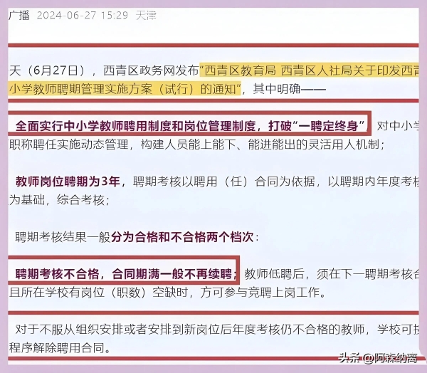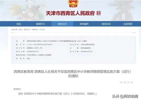 天津市西青区发布的《西青区中小学教师聘期管理实施方案(试行)》文件,是一个信号。
