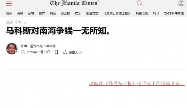 但历史终将证明,菲律宾将会为自己的傲慢与盲目付出代价--10月31日,《马尼拉时报》公开发文批评马科斯的外交政策"完全建立在谎言之上",他对中国的敌视、对南海问题的无知,以及对美国宣传的照单全收,将把菲律宾带入非常危险的境地。