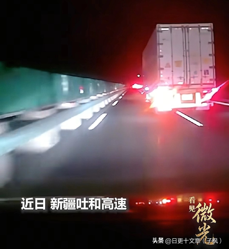 赵力带着家人自驾来新疆游玩,4月4日21时45分,他驾车行驶至吐和高速吐鲁番路段时,想从最左侧的超车道快速超车,没想到旁边车道的大货车突然闪着灯变了道。