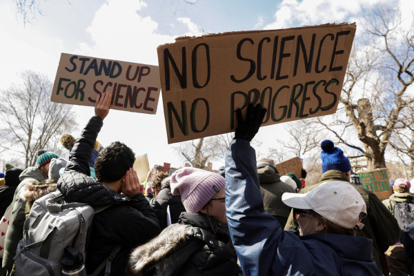当地时间2025年3月7日,美国波士顿,美国多地民众举行"为科学挺身而出"集会,抗议美国政府大幅削减科研经费。 IC photo