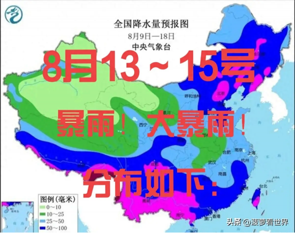 今年第5号台风玛莉亚已登陆,第6号台风山神已生成,7号台风安比也即将生成,可能看到三台风共舞局面,我国暴雨区向北转移,8月13~15号强降雨主要分布在如下地区